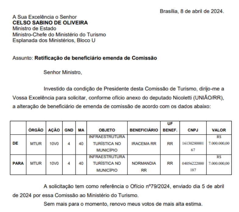 De acordo com reportagens, tais definições se dão em acordos informais nas comissões. A TB mostra, na nota, que há “apropriação dos recursos para demandas individuais dos parlamentares”. Um dos ofícios enviados pela Comissão de Turismo da Câmara dos Deputados ao ministério do Turismo solicita a mudança de uma cidade beneficiária a pedido de um colega de colegiado.