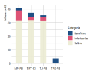 Dependendo do órgão (TJ-PB, TRT-13, MP-PB), os penduricalhos garantem em média entre R$ 4 mil e R$ 9,2 mil a mais por mês a um juiz ou promotor. O MP-PB é o que mais usa esse expediente para aumentar os ganhos de seus membros.