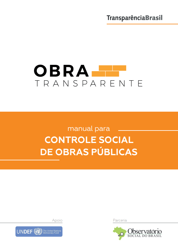 Este manual elaborado no âmbito do projeto Obra Transparente se dirige a organizações da sociedade civil e cidadãos em geral que desejem exercer seu papel como agentes de controle social. O objetivo é oferecer informações e orientações para que se possa entender melhor o funcionamento de uma obra pública e, assim, acompanhar sua implementação em todas as fases relevantes, desde o planejamento, passando pela licitação, contratação e execução, até a entrega para usufruto da população.